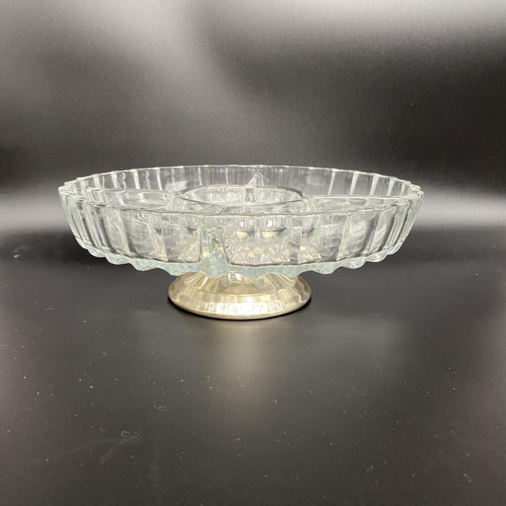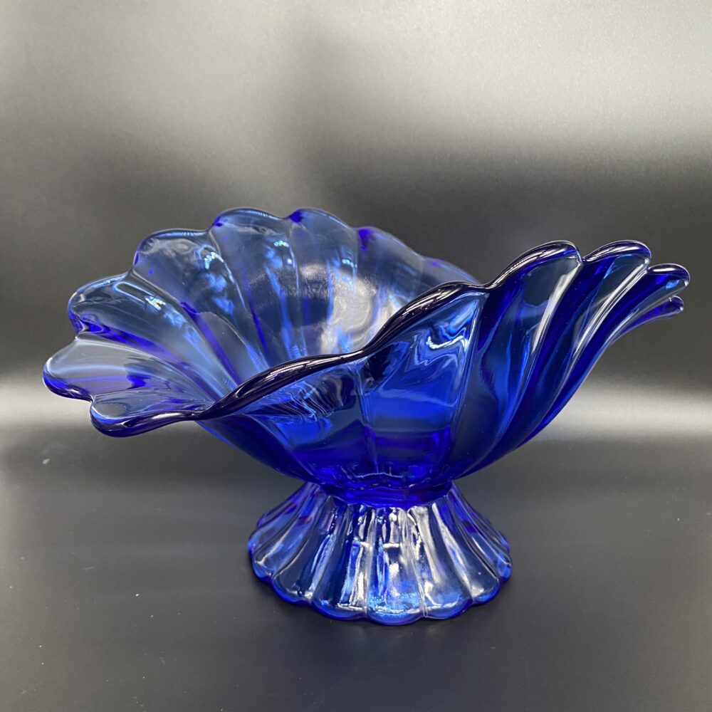 Mėlyno stiklo vaisių vaza