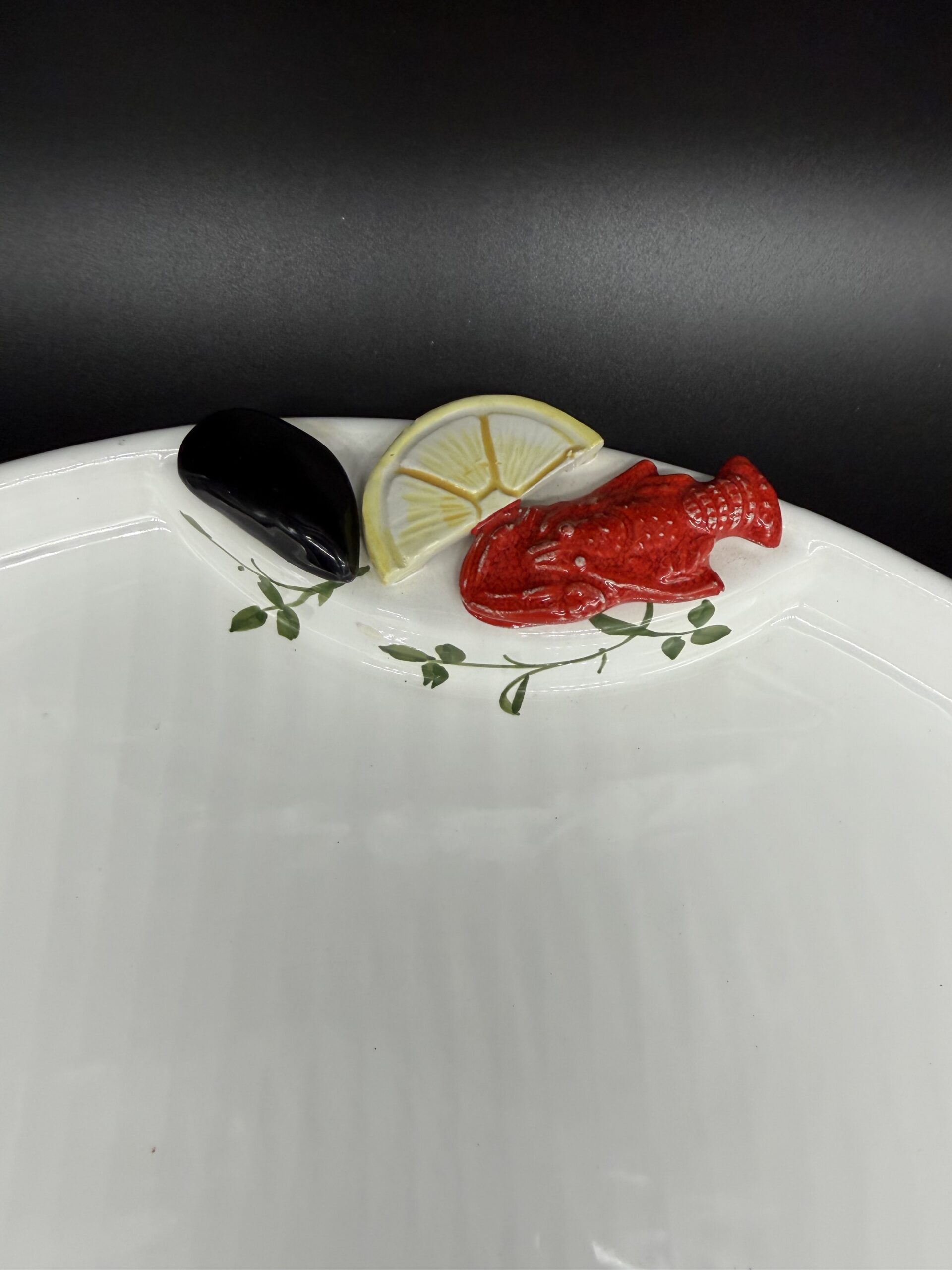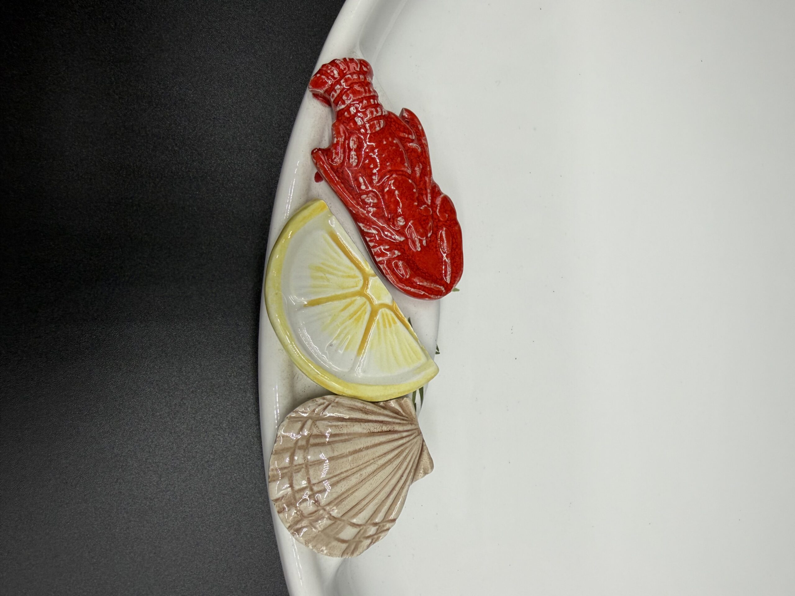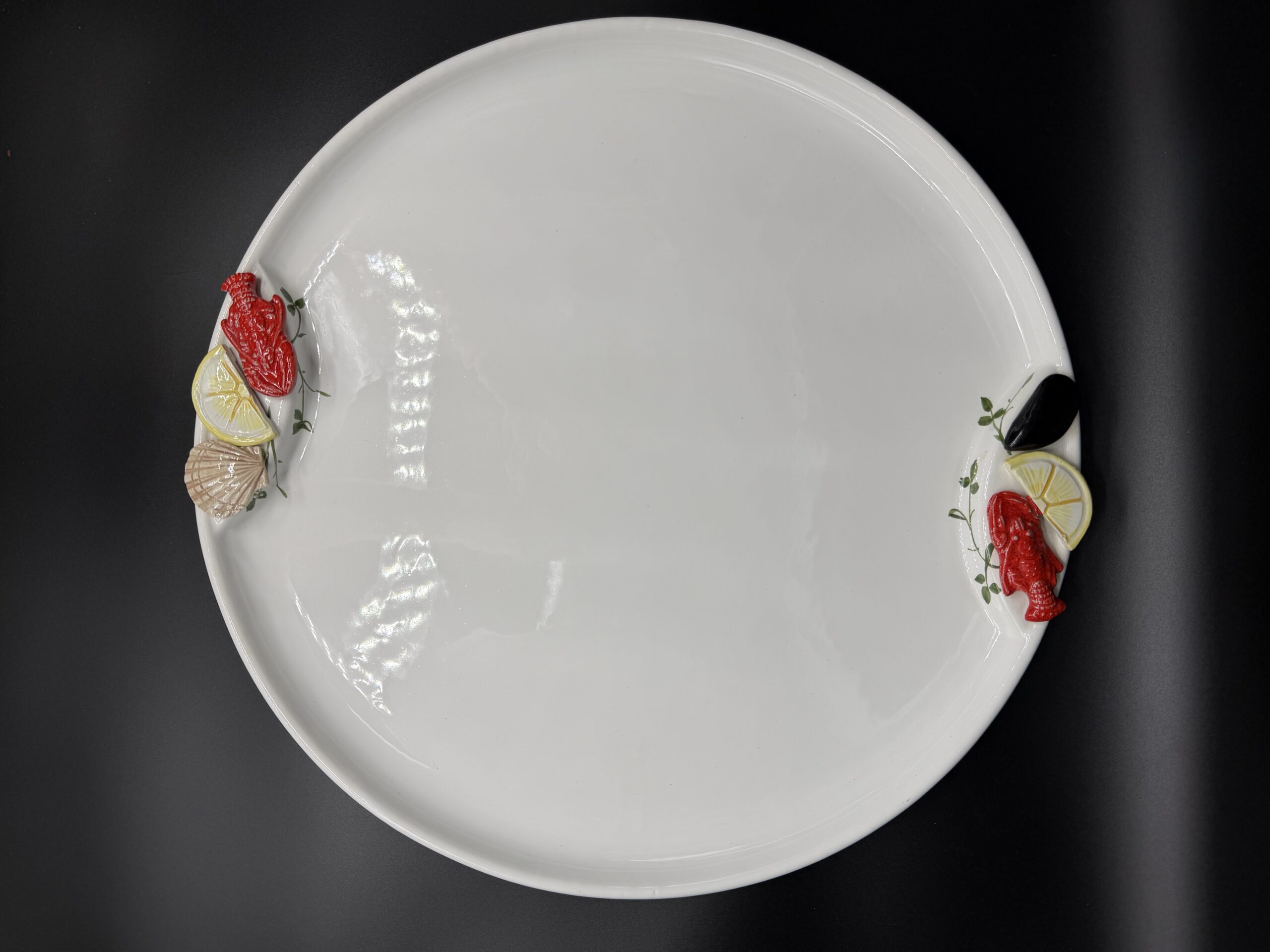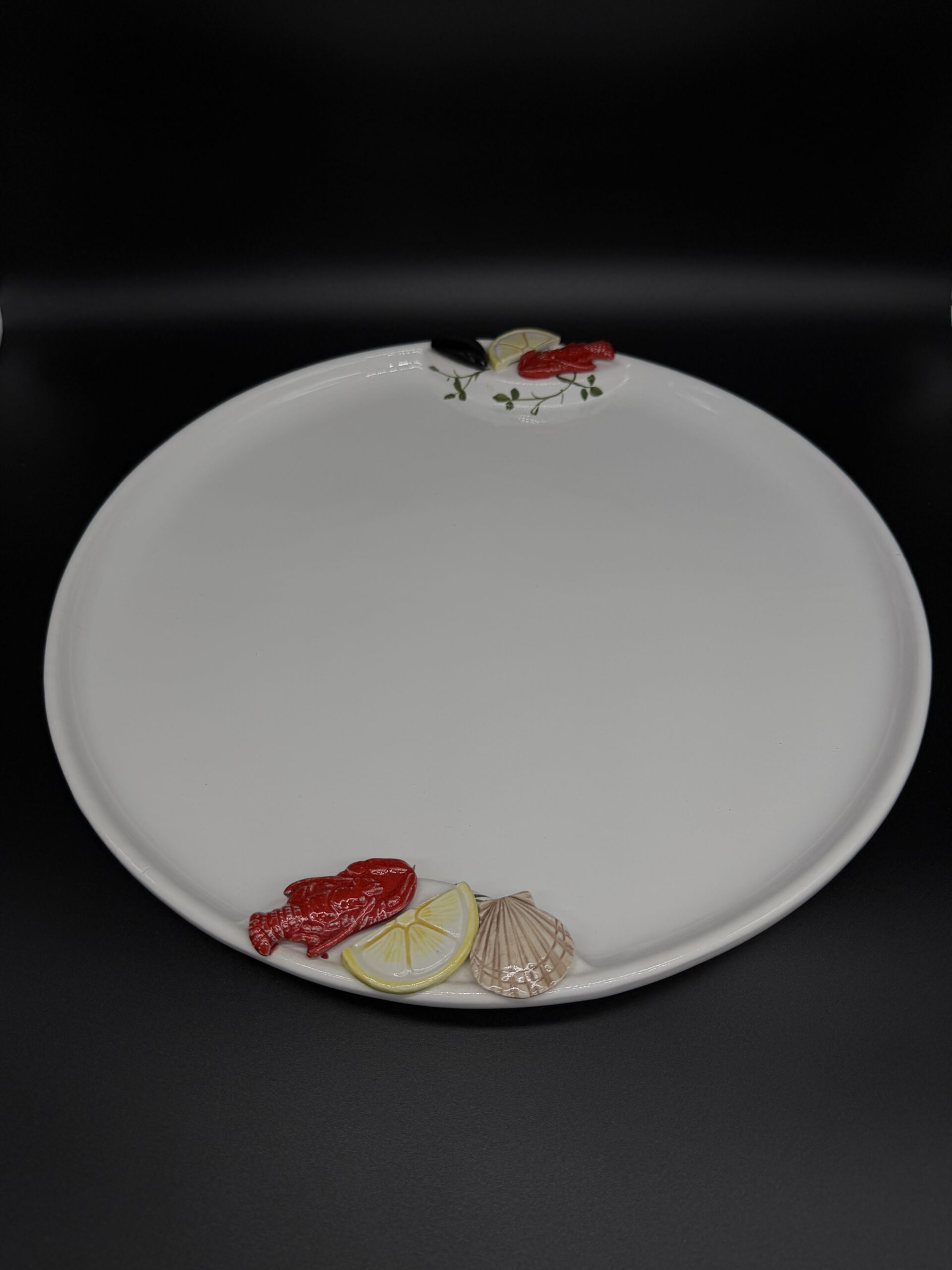 Stilius primena Italų gamintojo Bassano kūrybą, tačiau to įrodančio žymėjimo nėra. Majolikos rašto dekoras krašteliuose atkartoja jūros temą: lobsteris, kriauklės, midijos. Kai susirenka didelė draugų kompaniją, o stalo ant vietos nedaug – viską galėsite servituoti ant vieno padėklo, o patiekalą dalintis visi. Padėklas jūrinės nuotaikos, bet kodėl ant jo nepatiekus picos?