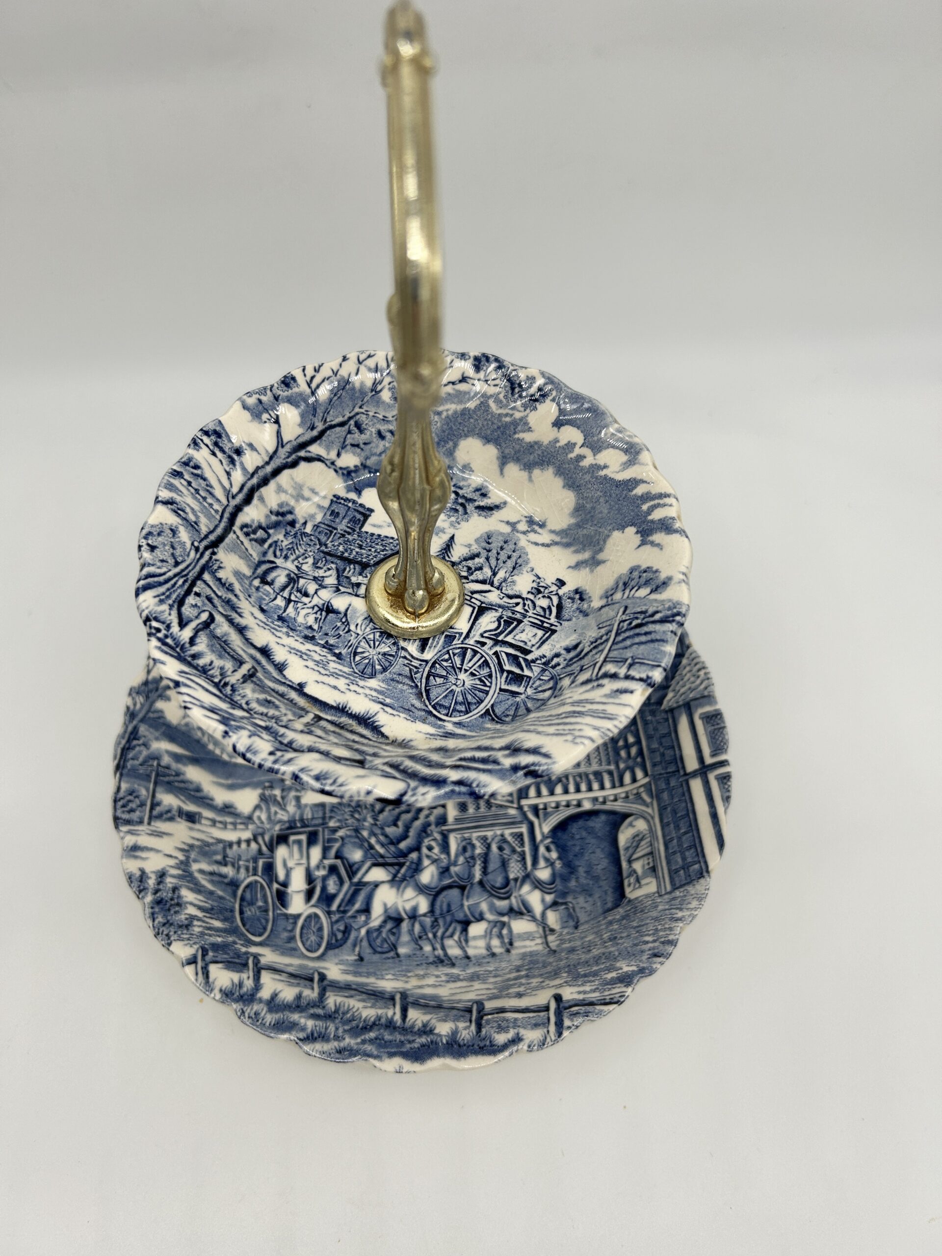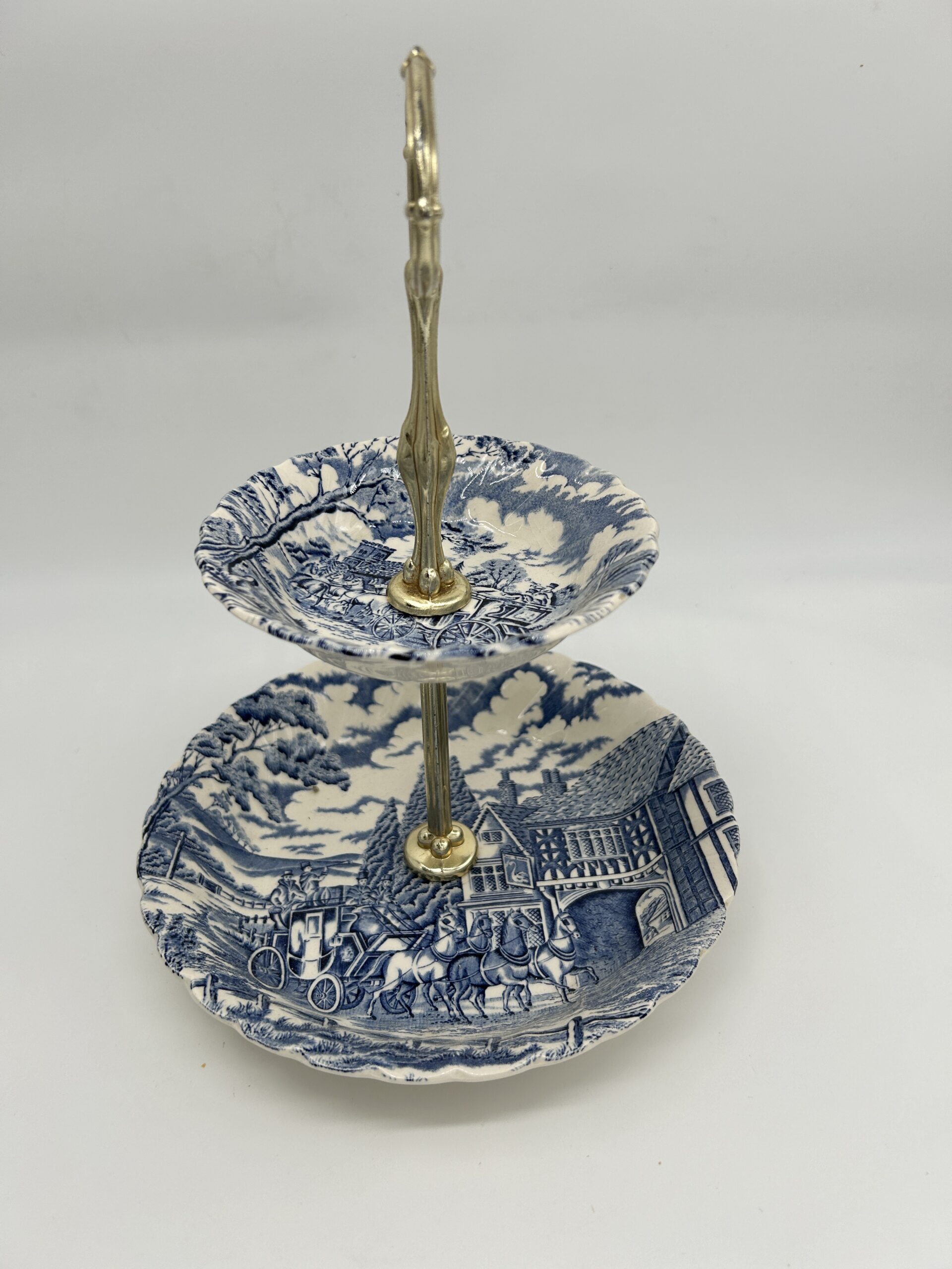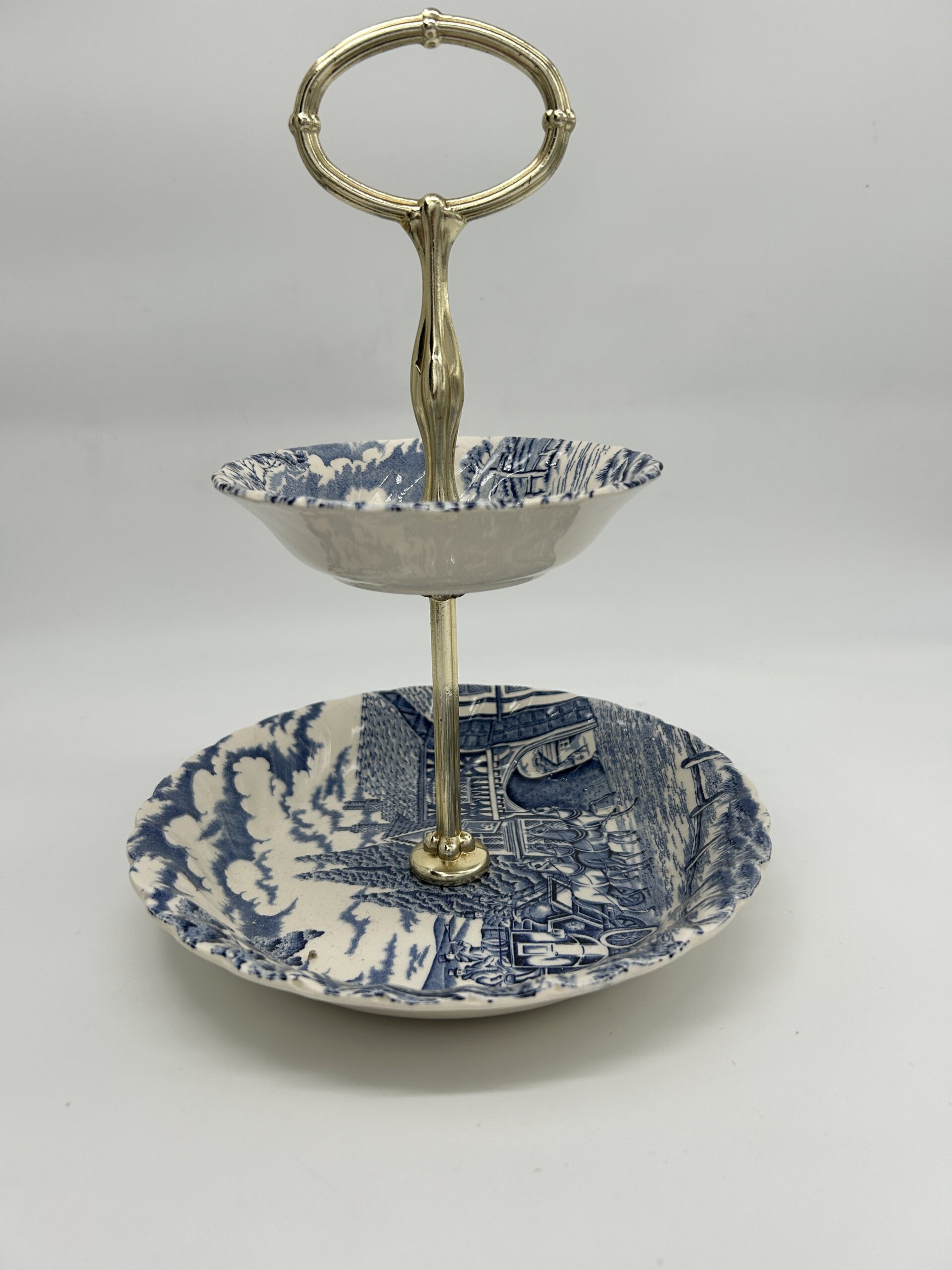 Dviejų aukštų padėklas tipinis popiečio arbatėlės atributas, jame įprastai serviruojami sumuštinukai ar saldumynai. Aukso spalvos detalėmis dekoruota rankena suteikia puošnumo.