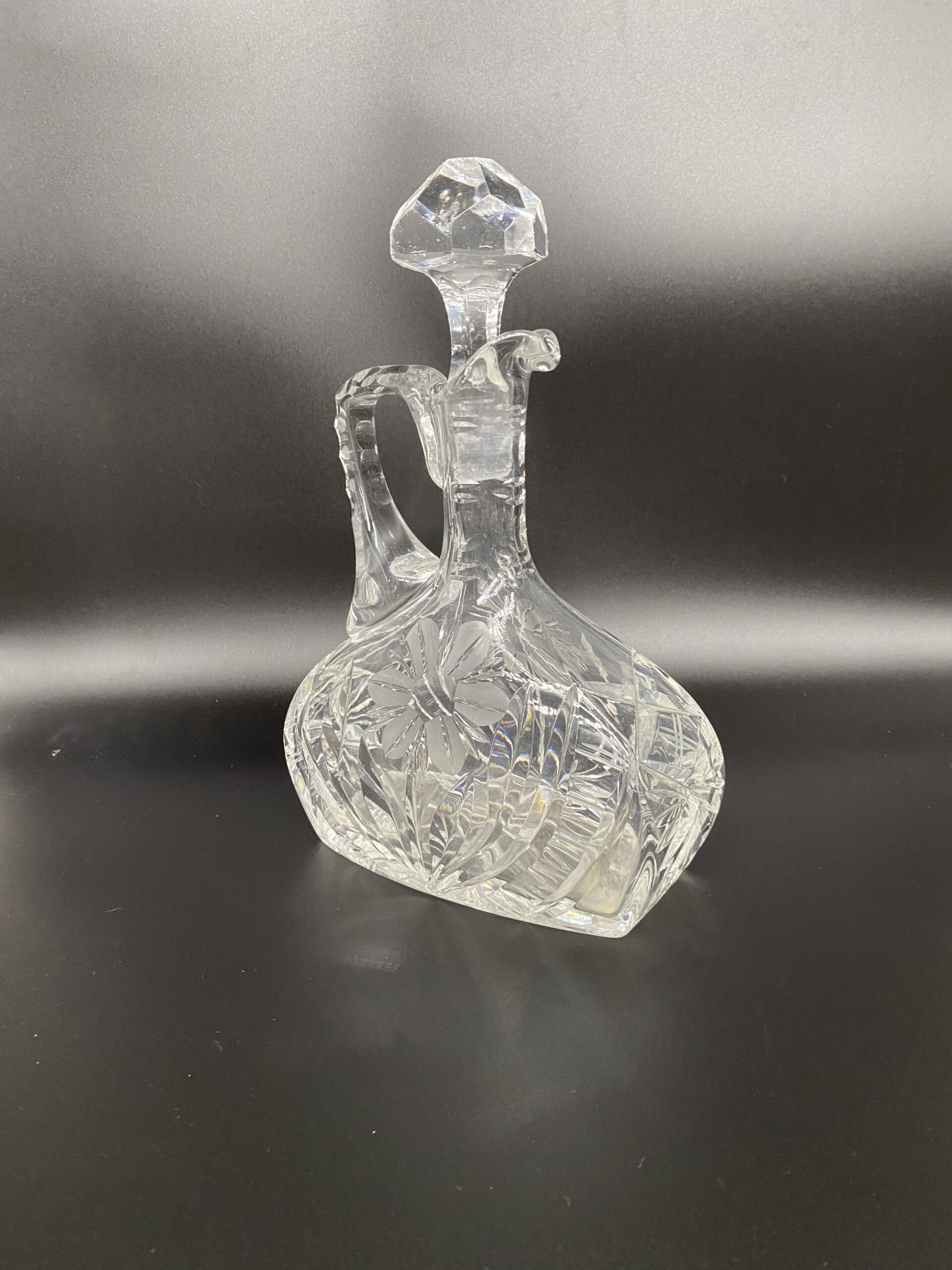 Neįprastos formos grafinas stipriesiems gėrimams serviruoti. Prabangus graviravimas, ypatingas blizgesys, sunkus, elegantiškas grafinas gali būti išskirtinė dovana.