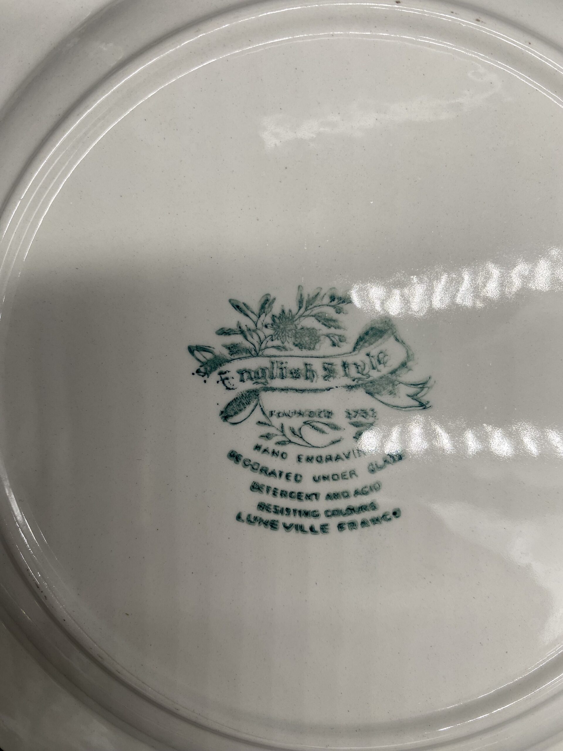 Lunéville yra garsi prancūziška porceliano manufaktūra, įkurta 1728 m. Vakarinėje Prancūzijos dalyje, Loreno regione. Ji tapo svarbiu XVIII–XIX a. porceliano gamybos centru, gaminusi aukštos kokybės indus, figūrėles ir dekoratyvią keramiką, dažnai su tapytais dekorais ir reljefiniais raštais. Per savo istoriją manufaktūra bendradarbiavo su žymiais menininkais ir tapo žinoma dėl elegantiško dizaino bei prancūziškos meistrystės porceliano gamyboje. Angliško stiliaus Luneville užkandžių lėkštės, dekoruotos angliško kaimo vaizdais. Rinkinyje yra 5 vienetai, parduodama kartu.