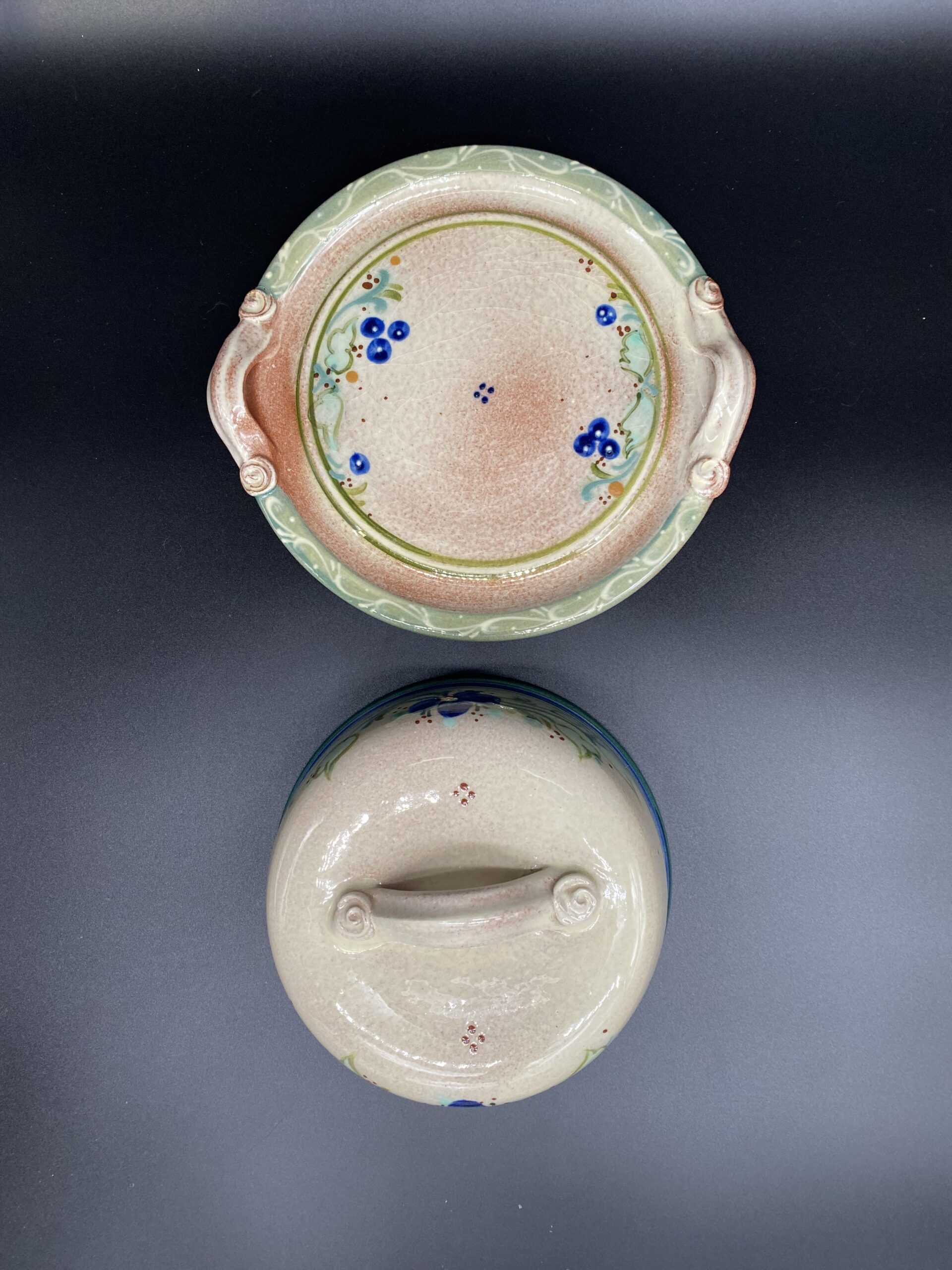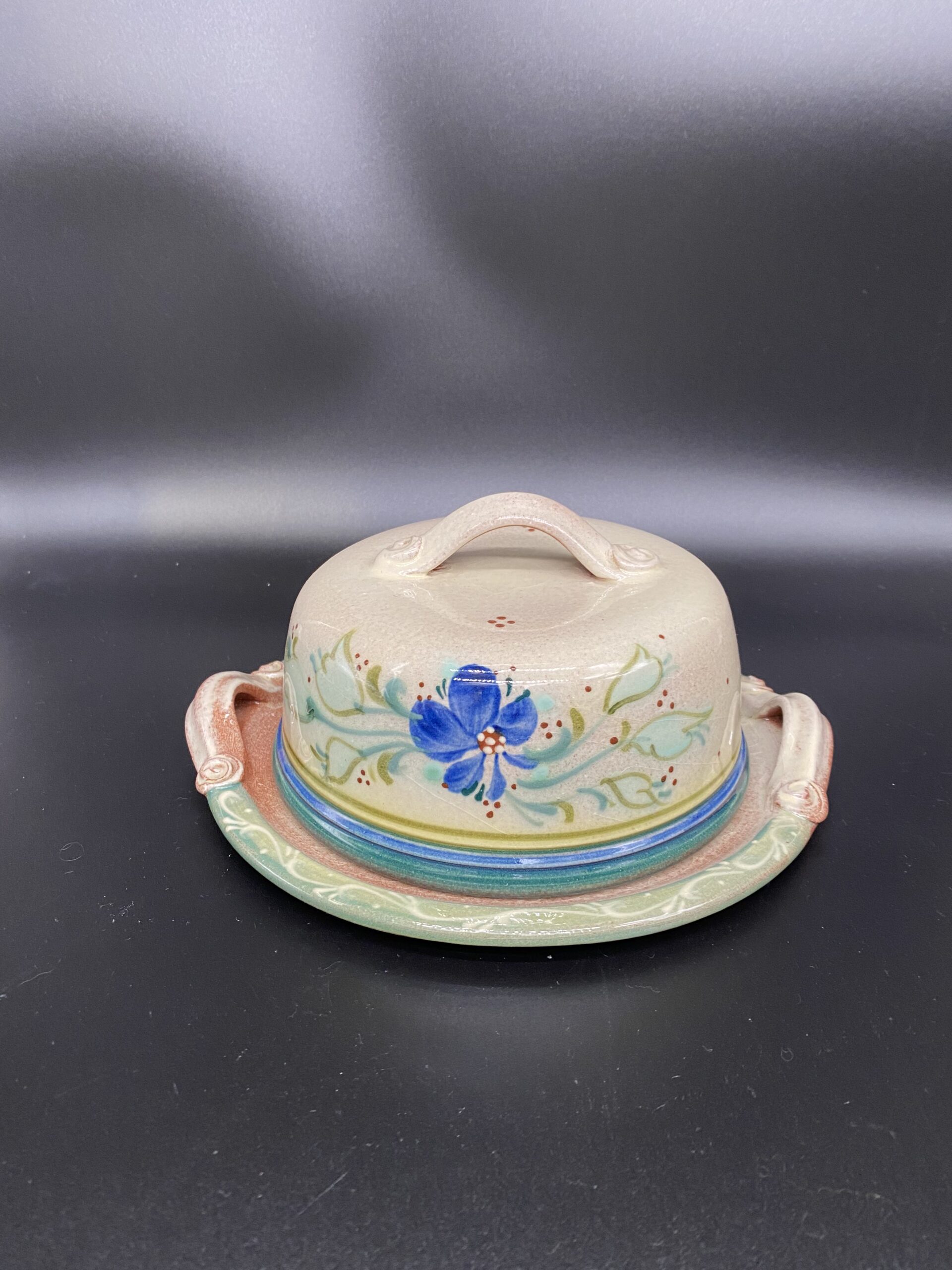 Ši apvali, didesnio dydžio rankų darbo sviestinė išsiskiria natūraliomis, žemiškų atspalvių spalvomis, kurios suteikia jaukumo ir autentiškumo pojūtį. Kiekvienas indas yra unikalus – subtilūs glazūros niuansai atspindi meistro darbą ir natūralų medžiagiškumą. Dėl savo formos ir talpos sviestinė puikiai tinka ne tik sviestui laikyti, bet ir užkandžiams, sūriams serviruoti.