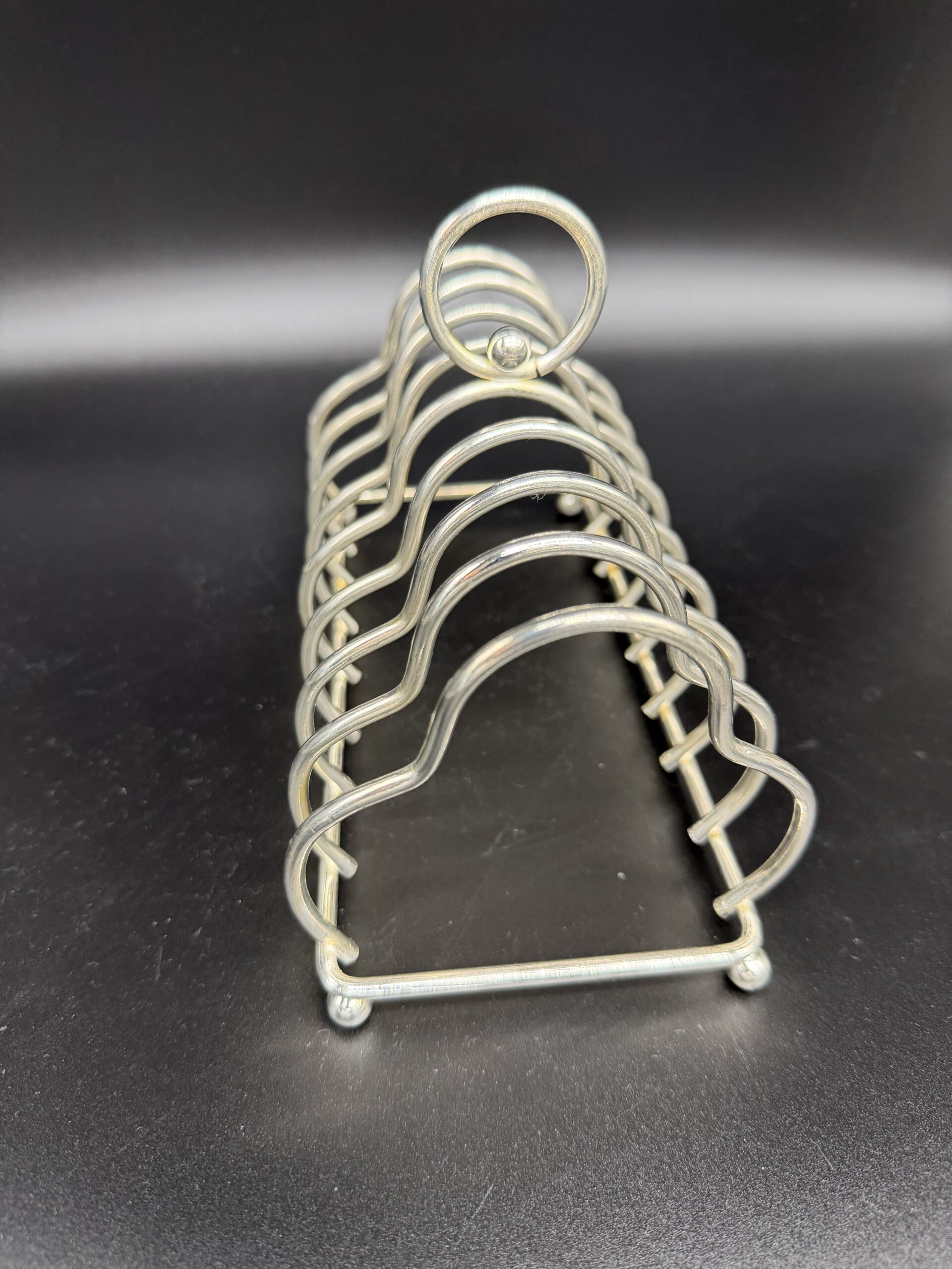 Šis metalinis skrebučių stovas su rankenėle – praktiškas ir stilingas stalo aksesuaras, skirtas patogiam skrebučių, duonos ar sumuštinių pateikimui. Tvirta metalinė konstrukcija užtikrina stabilumą ir ilgaamžiškumą, o ergonomiška rankenėlė leidžia lengvai pernešti stovą nuo virtuvės iki stalo.